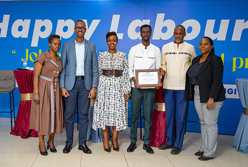 The event concluded with the recognition of Mr. IRAMBONA Ezechias, the Digital Literacy Training Officer from the Digital Cluster Coordination and Community Development Division at RISA. He was awarded a certificate of appreciation as the Best-Performing Employee for the year 2024/2025.